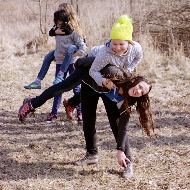 Wiosna 2015, Ania wskakuje na Dosię w czasie gry w czołgi.